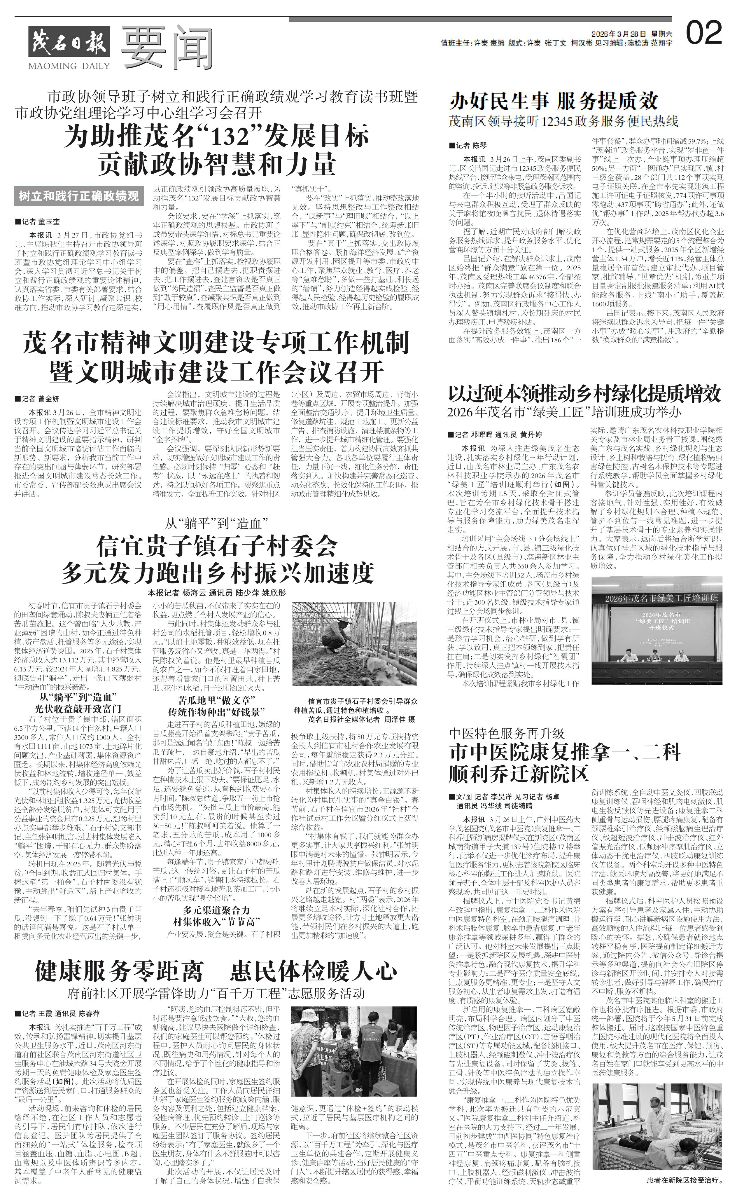 本报讯 为深入推进绿美茂名生态建设,扎实落实乡村绿化三年行动计划,近日,由茂名市林业局主办、广东茂名农林科技职业学院承办的2026年茂名市“绿美工匠”培训班顺利举行(如图)。本次培训为期1.5天,采取全封闭式管理,旨在为全市乡村绿化技术骨干搭建专业化学习交流平台,全面提升技术指导与服务保障能力,助力绿美茂名走深走实。