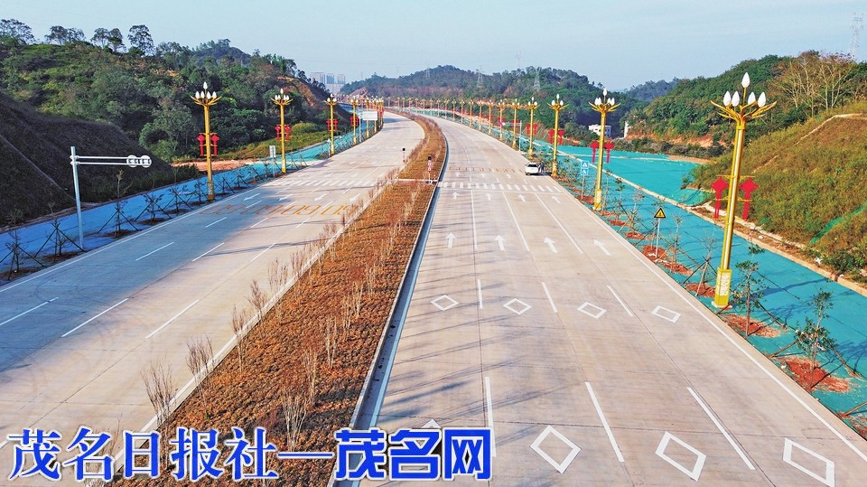 高州市永青大道二期位于高州城区东南部,目前路面工程、道路标线、照明、绿化带等配套设施已基本完成,即将迎来通车。