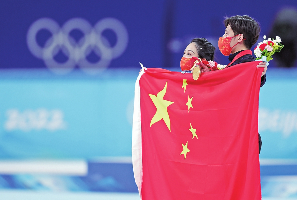 2月19日,中国选手隋文静(左)/韩聪在奖牌颁发仪式后庆祝。当日,北京2022年冬奥会花样滑冰双人滑自由滑比赛在首都体育馆举行,中国选手隋文静/韩聪夺得双人滑冠军。新华社记者 兰红光 摄编辑:关杜花初审:许 泰终审:朱武军 点赞
