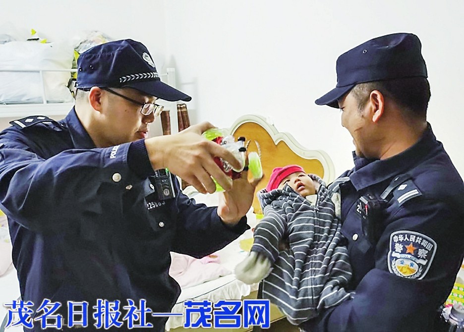 民警用奶瓶哄婴儿。通讯员春秋摄