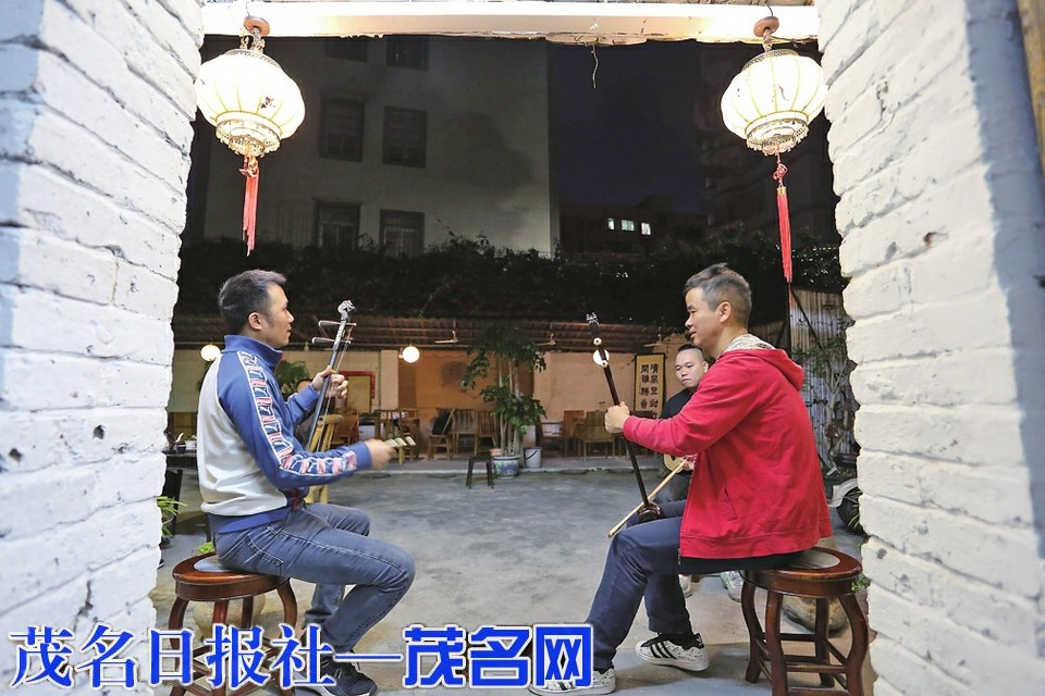喝上一盏茶、拉上一段小曲、聊聊音乐、谈谈人生……在雅园社区党群服务中心旁边有着一个充满了雅意的地方,这里不时有着悠扬动听的民乐声从院子里流淌而出。门口处的两棵使君子树枝繁叶茂,树底下的围墙写着“欢迎光临”四字和挂着一个写着“缘茗轩”的木牌匾。推门而进,里面是一个带着小院子的瓦房。记者前来探访的这一天,正好遇上了老板和朋友们在院子里合奏广东民乐。