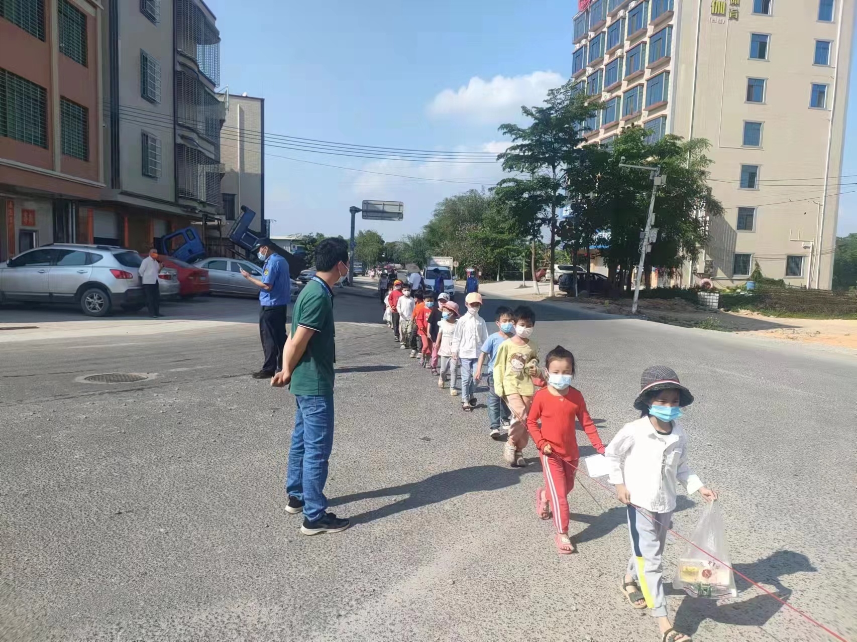 近日,电白区观珠镇的小学生牵绳排队去做核酸检测的短视频被广大网友转发点赞,画面中的孩子们戴着口罩,手牵同一根绳子,保持1米间隔距