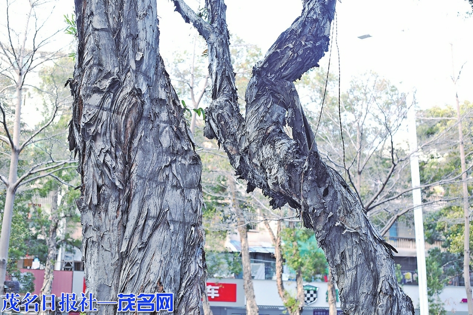 据了解,茂名建市后,白千层成了当时最早的城市绿化树之一,主要种植在河西红旗南路一带。由于树种不同,那一段路与其他路段的绿色并不相同,还颇具异域风情。后来,白千层被种植在油城四路部分路段,成了那里的“卫士”。匆匆数十载,这些白千层虽还不算古老,却也是久经岁月洗礼;虽其貌丑,却见证了河东、河西的发展,成为了不少人抹不掉的城市印记。