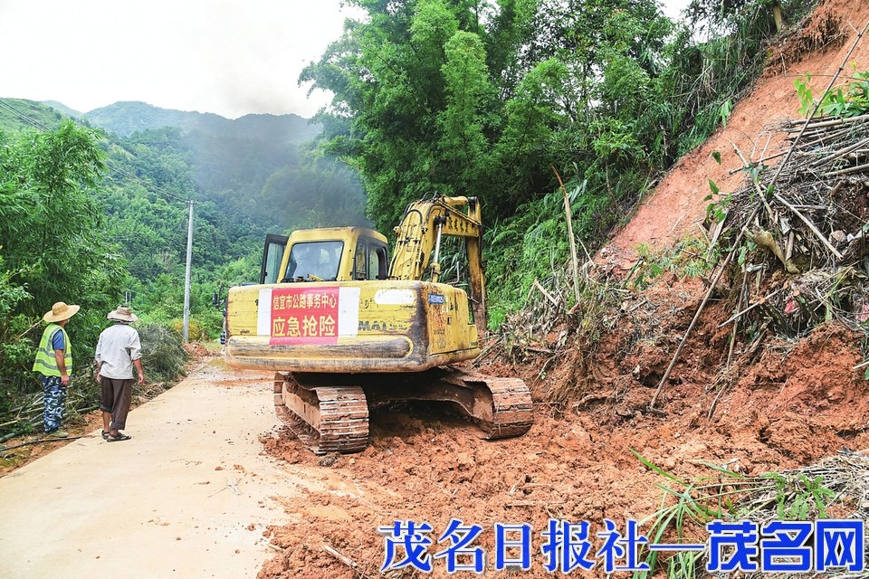 施工人员在清理路障。茂名日报社全媒体记者黎雄摄