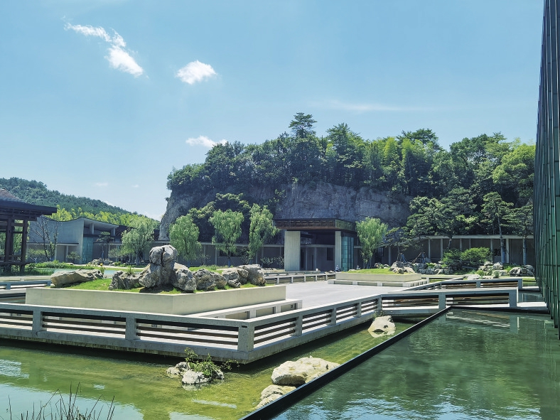 杭州国家版本馆于2020年4月奠基,总建筑面积10.31万平方米,建有主书房、南书房、文润阁、山体库房、附属用房等13个单体建筑,各单体建筑之间通过具备展览功能的宽大展廊相连接,构成互通便利的建筑群体,引自良渚港的流水,在其间或停蓄成池,或清流激湍。