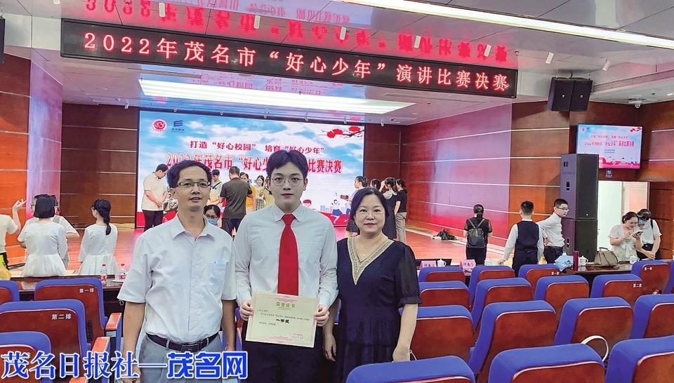 在梁少虹老师的指导下,江尧明同学围绕“弘扬好心精神,争做好心少年”这一主题,结合自身助人经历,表达了爱党爱国爱茂名的真挚情感。最终,以市直赛区高中(中职)组第一名的身份晋级市级决赛,又在决赛中拔得头筹。 (文/图赵伟博苏忠杰)