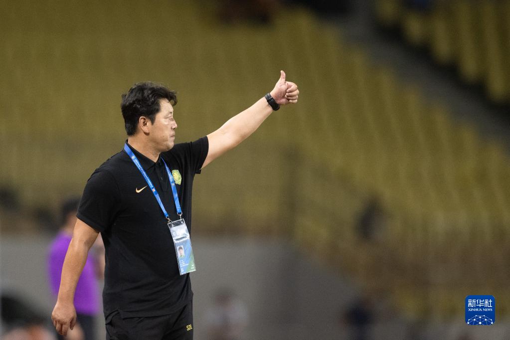 8月17日,北京国安队临时主教练隋东亮在场边指挥。新华社记者 肖艺九 摄