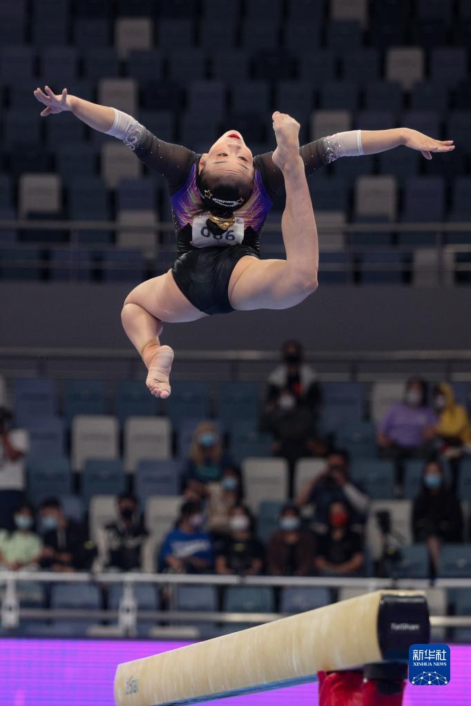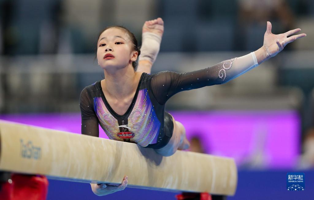 9月5日,浙江特美赢杯队选手张清颖在平衡木比赛中。新华社记者 许雅楠 摄