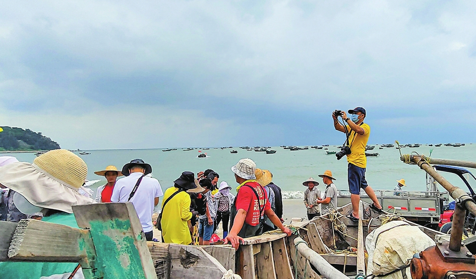 志愿者在海边拍摄疍家文化。茂名日报社全媒体记者 周泽佳 摄