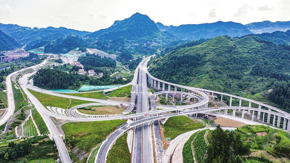 这是贵州石阡至玉屏高速公路花桥互通(2021年6月17日摄,无人机照片)。新华社记者陶亮摄