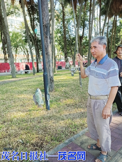 谭日贵老同志很快钓到了鱼。