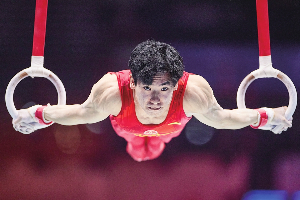 ▲11月4日,张博恒在吊环比赛中。新华社记者孟鼎博摄