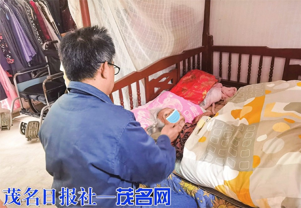 梁富华喂母亲喝汤。茂名晚报通讯员曾碧玉摄