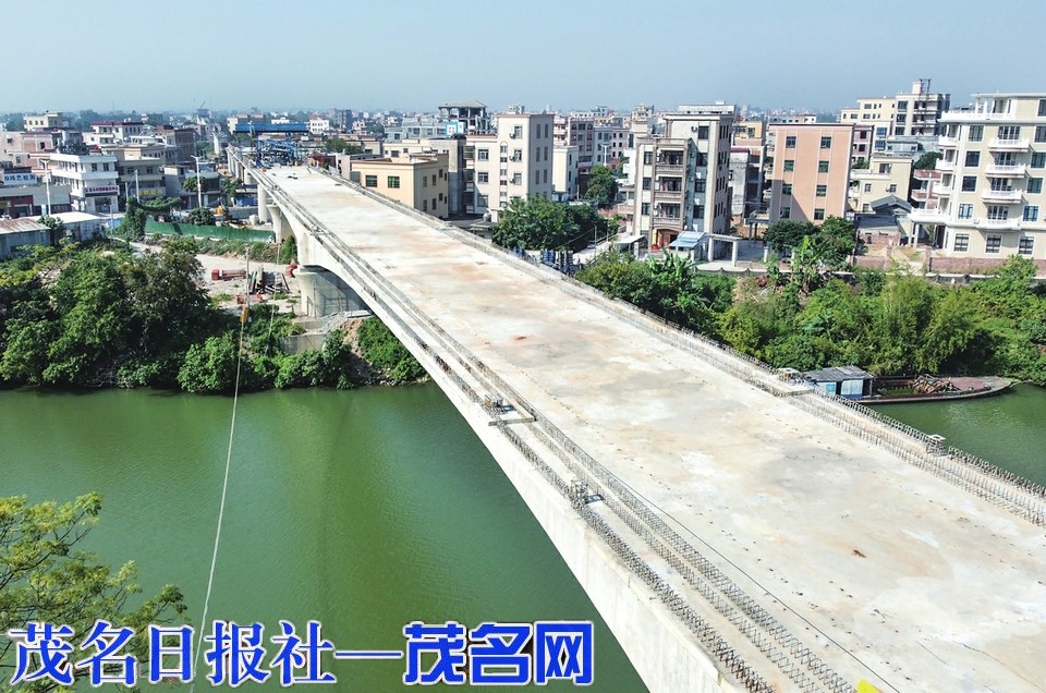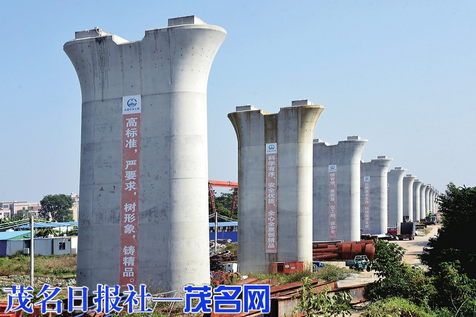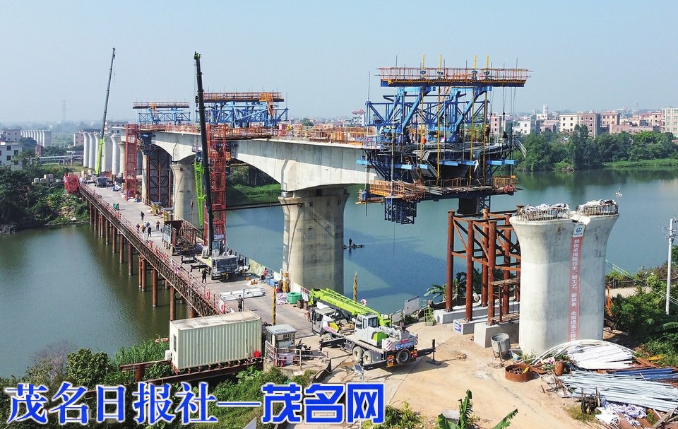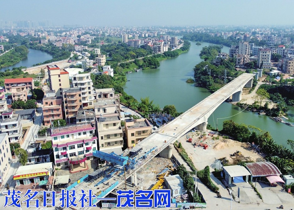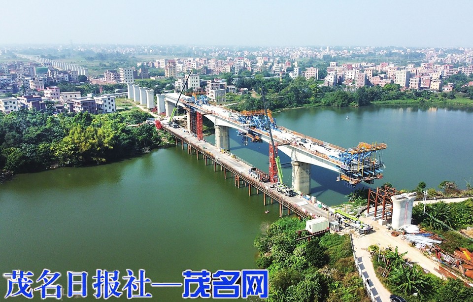目前,驾车经过茂名大道潭莲路段,可看到横跨茂名大道的广湛高铁大桥已经合龙。其实,广湛高铁从茂名南站出来后继续西行,就会走上一条长达11公里的袂花江特大桥。袂花江特大桥跨越茂名大道后就沿袂花江并肩而行,在袂花圩2号桥跨越袂花江进入北斗村,在下北斗村再一次跨越袂花江,之后再跨越文运河,这座全长11153.83米的特大桥是一路跨过三次袂花江及其支流。