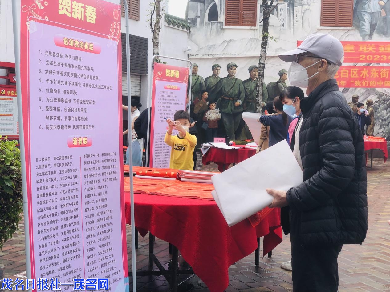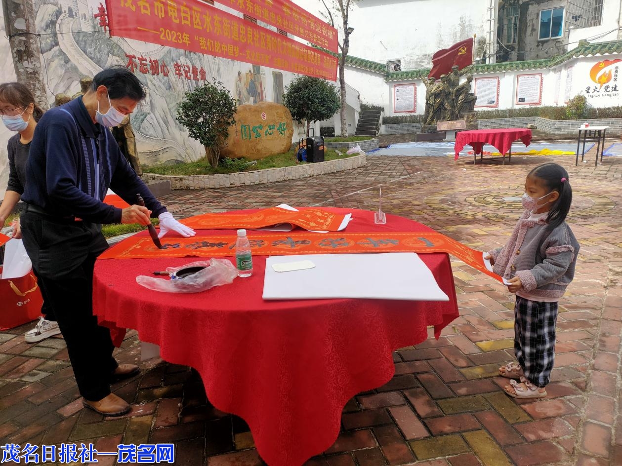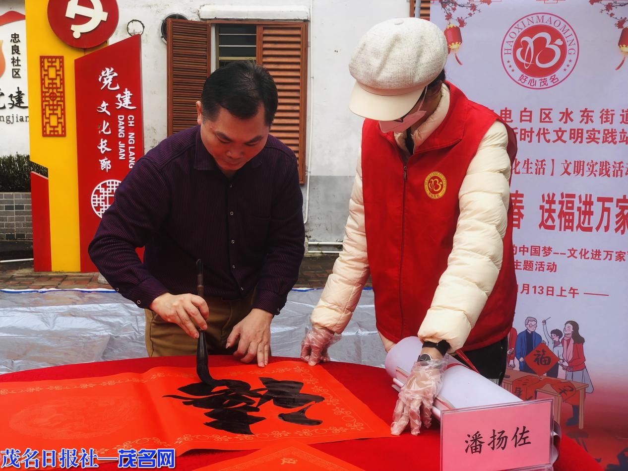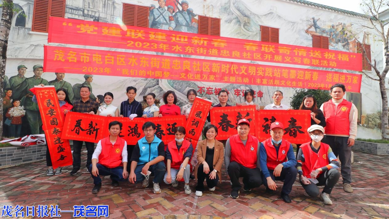 为丰富居民群众精神文明生活,弘扬中华民族优秀传统文化,让党的二十大精神深入群众、深入人心,1月13日上午,电白区水东街道忠良社区党委、社区新时代文明实践站联合社区“双报到”单位在社区党史园开展“党建联建迎新春·春联寄情送祝福”义写春联活动。