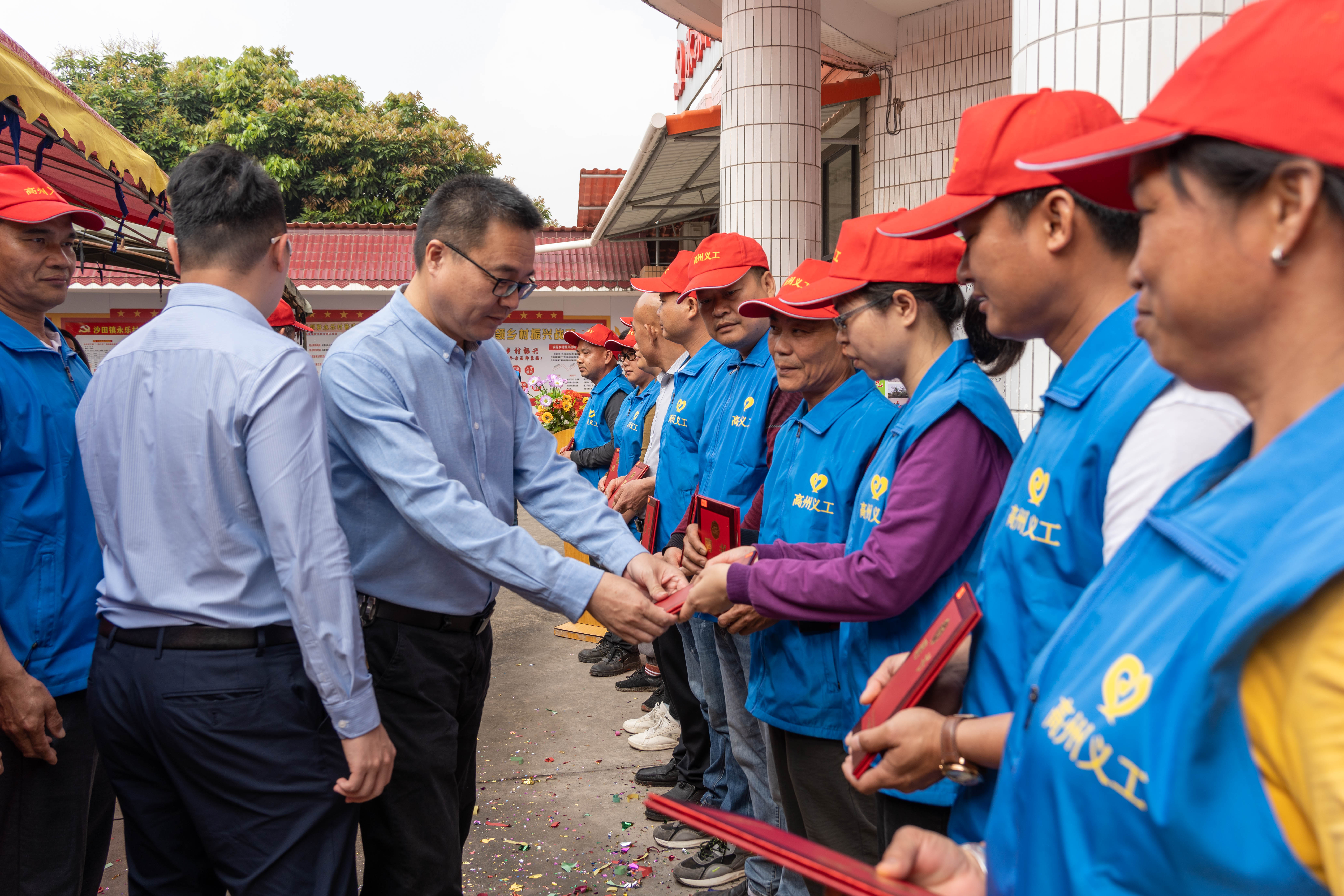 高州义工团沙田永乐义工队创始人“麻包叔”陈来昌在仪式上希望全体义工,要立足各自岗位职责,积极配合政府和村委会做好志愿服务工作,弘扬志愿精神、倡导文明新风,提升群众素质,为加快推进当地的产业振兴、人才振兴、文化振兴、生态振兴、组织振兴,促进永乐和谐发展作出一份力量。