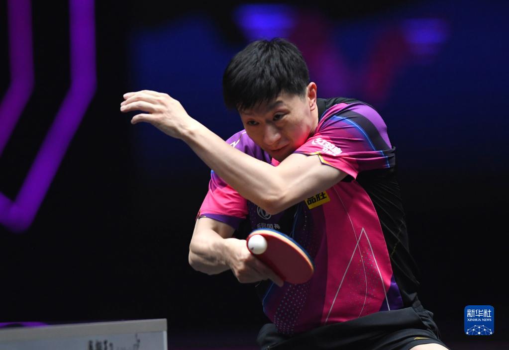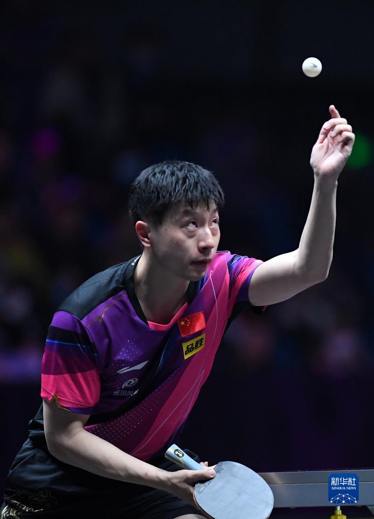 4月11日,马龙在比赛中回球。新华社记者 郝源 摄