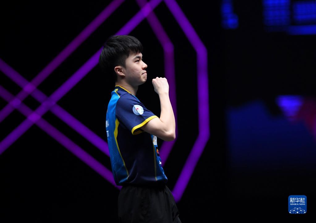4月11日,林昀儒庆祝比赛胜利。新华社记者 郝源 摄
