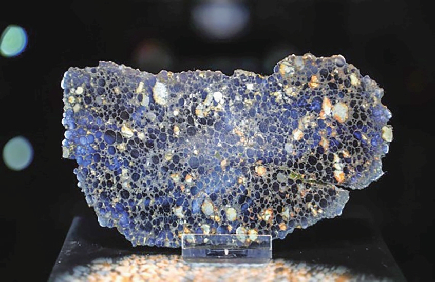 2019年8月9日,陨石展上展出的发现于尼日利亚的一块陨石。新华社记者王飞航摄