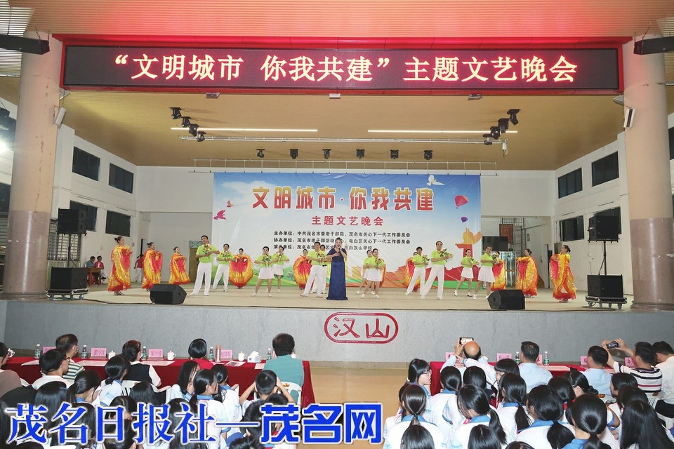 茂名网讯 4月21日晚,由中共茂名市委老干部局、茂名市关心下一代工作委员会主办;茂名市老干部活动中心、电白区关心下一代工作委员会协办,在电白汉山学校文娱活动中心举办“文明城市,你我共建”主题文艺晚会。