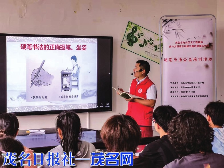 为弘扬中华优秀传统文化,丰富社区群众文化活动,5月16日,由茂名市电白区文广旅体局主办,茂名市电白区文化馆承办的“硬笔书法公益培训活动”文明单位志愿服务活动在电白区文化馆免费开放活动室开展,周边社区的近30名硬笔书法爱好者参加了活动。