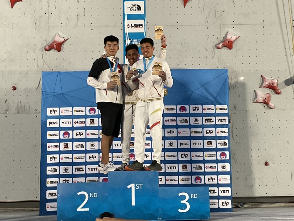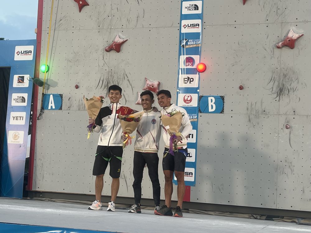 当地时间21日,2023年攀岩世界杯盐湖城站落幕,印尼选手莱昂纳多、中国选手伍鹏和印尼选手卡特宾在男子速度项目中分列前三。