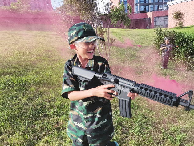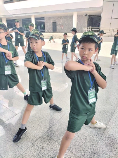 训练场上,小小“兵哥哥”排着整齐的方阵,精神抖擞,尽显飒爽之姿。孩子们在夏令营期间锻炼体能,学习站军姿、打军体拳、了解军事装备,进行真人CS实景作战等,还自己洗衣服,整理内务,锻炼了自我独立能力。