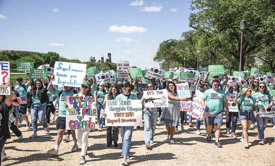 4月17日,人们在美国首都华盛顿参加控枪游行,呼吁禁止销售攻击性武器,应对美国枪支暴力问题。新华社发(亚伦摄)