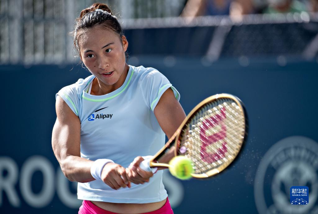 8月8日,郑钦文在比赛中回球。新华社发(宋伟仁摄)