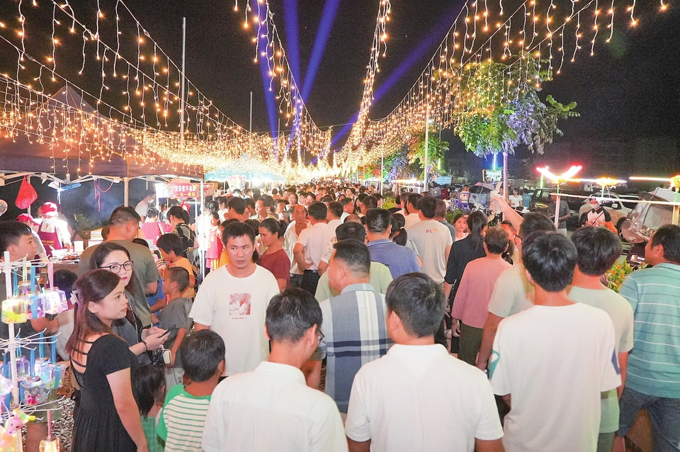 茂名网讯 夜幕降临,华灯初上,化州市那务镇“土特产”网红街夜市人群络绎不绝、熙熙攘攘,几十个摊档错落有致,化橘红、黄金百香果、田心番石榴等“土特产”整齐摆放,吆喝声、喧闹声此起彼伏,热闹非凡。那务镇“土特产”网红街一开市,马上迎来了人流高峰,迅速点燃了那务镇夜市经济活力。游玩的群众脸上洋溢着幸福的笑容,开心地说道:“太热闹了,在这里能看到各种各样的那务‘土特产’,还能免费品尝,一站式购买,方便快捷,除此之外,还能带着小孩看看夜景,尝尝小吃,看看文艺演出,散散步,体验感特别好。”