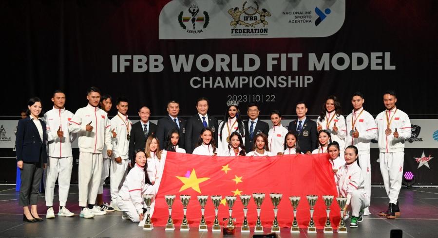 新华社北京10月23日电 2023年国际健美健身联合会世界健身模特锦标赛当地时间23日在立陶宛维尔纽斯落幕,中国队取得团体总分冠军,单项两金、三银、一铜的骄人战绩。