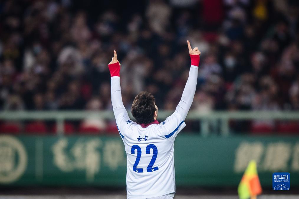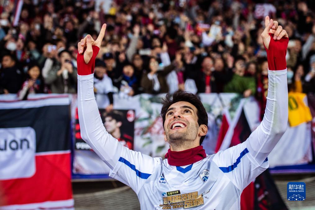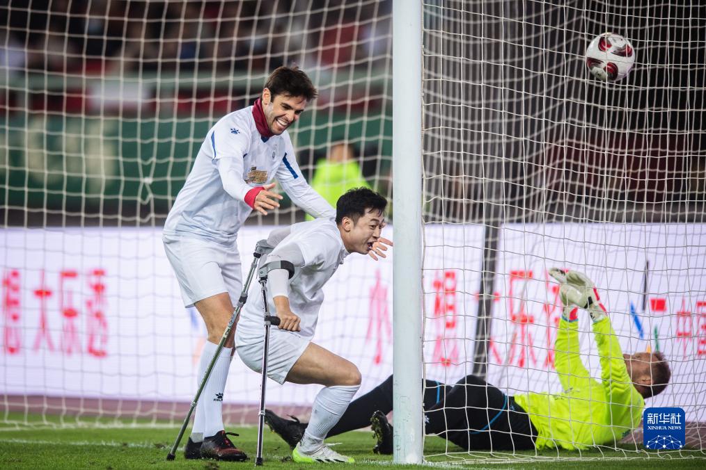 11月26日,美洲球星队球员卡卡在比赛中庆祝。新华社记者 伍志尊 摄