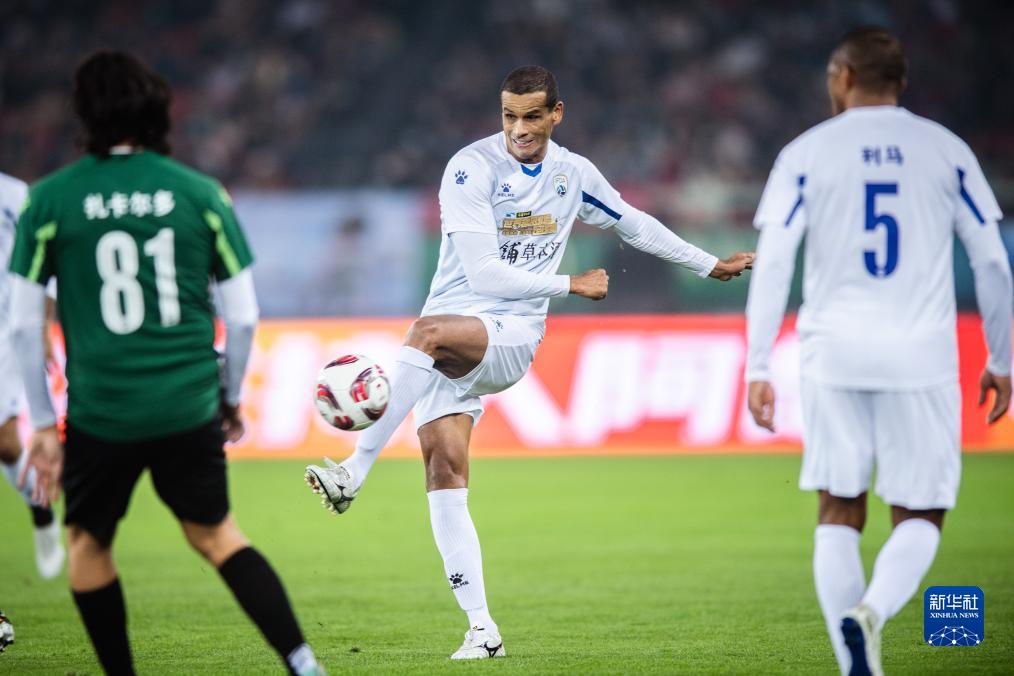 11月26日,美洲球星队球员里瓦尔多(中)在比赛中。新华社记者 伍志尊 摄