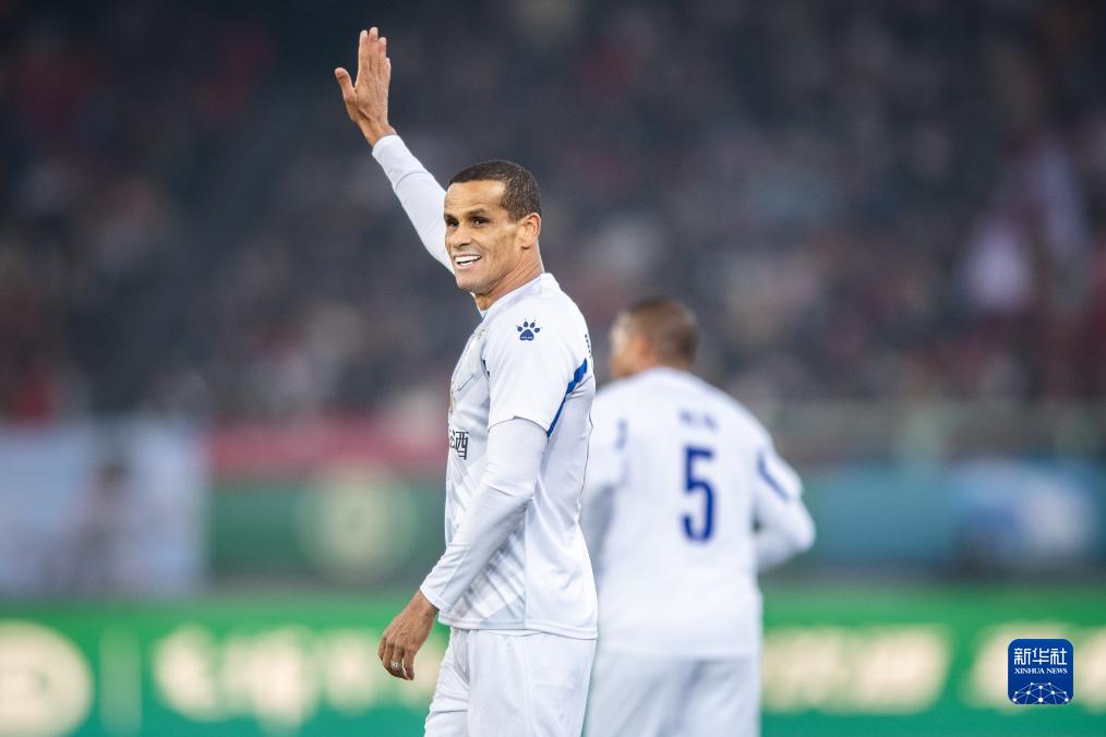 11月26日,美洲球星队球员里瓦尔多在比赛中向观众致意。新华社记者 伍志尊 摄