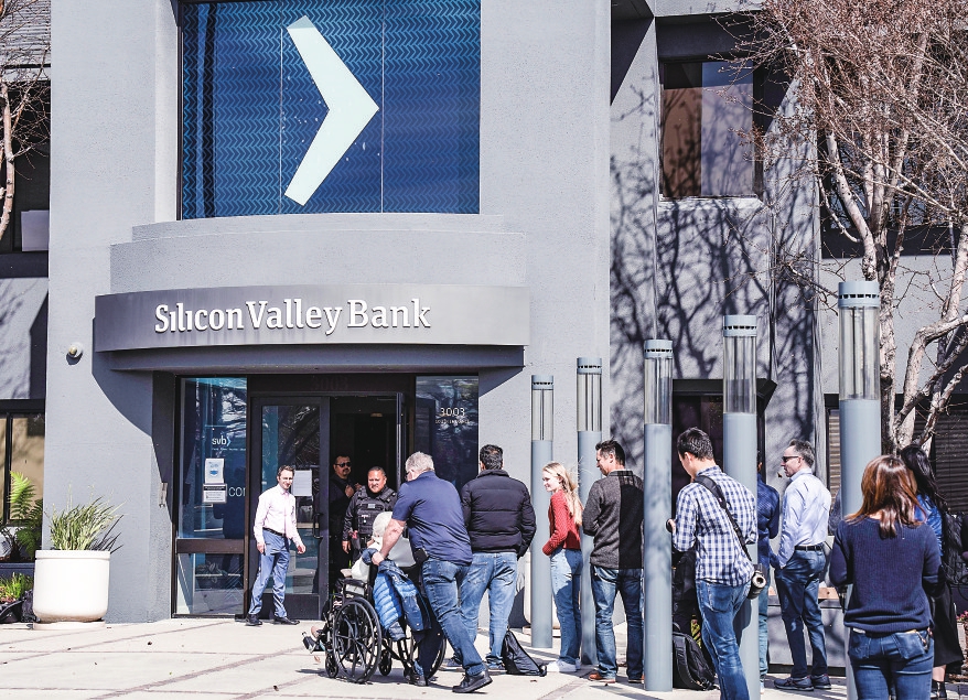 2023年3月13日,客户在美国加利福尼亚州圣克拉拉市硅谷银行总部外排队等候办理业务。美国硅谷银行因资不抵债3月10日遭金融监管部门关闭。新华社发(李建国摄)