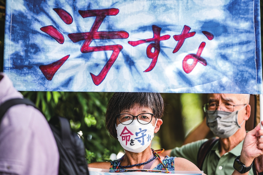 2023年8月18日,市民在日本东京首相官邸前集会,抗议福岛核污染水排海计划。新华社记者张笑宇摄
