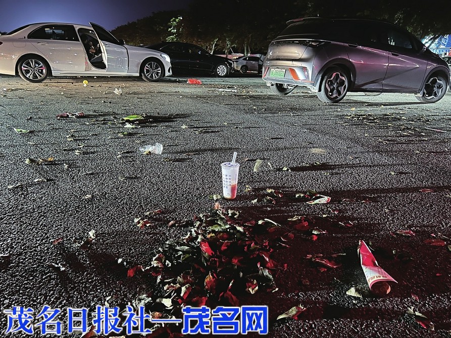 中国第一滩停车场地面有不少垃圾。茂名日报社全媒体记者 赖碧怡 摄