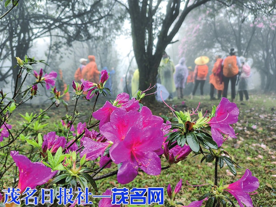 茂名网讯 3月9日,信宜思贺八排顶山上的云锦杜鹃花雨中初绽放,吸引茂名市区、化州、罗定、阳春等地近百名喜欢看花的驴友冒雨上山赏花。本周末,若天气良好,八排顶应是一场赏花盛会。