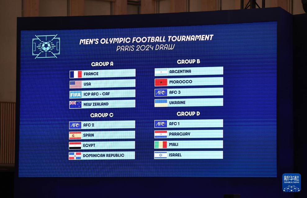 这是3月20日拍摄的奥运会男子足球比赛抽签结果。新华社记者 高静 摄