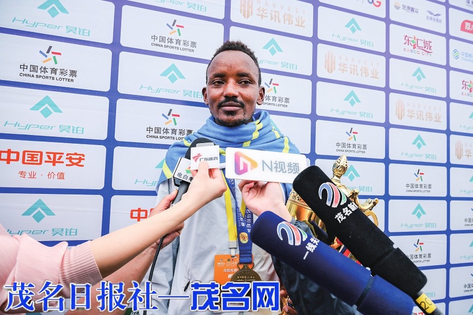 LETANTO STEPHEN KIMBOM⁃ET以2小时28分34秒的成绩夺得男子全程马拉松冠军,赛后他表示很开心能来到茂名参赛,一路上他遇到了很多热心的市民在为他加油打气,这让他感受到茂名是一个非常友善的城市。