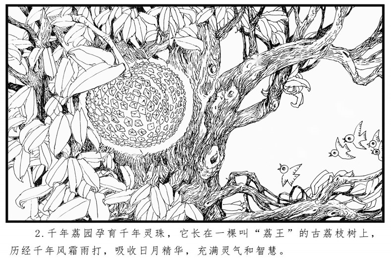 2.千年荔园孕育千年灵珠,它长在一棵叫“荔王”的古荔枝树上,历经千年风霜雨打,吸收日月精华,充满灵气和智慧。