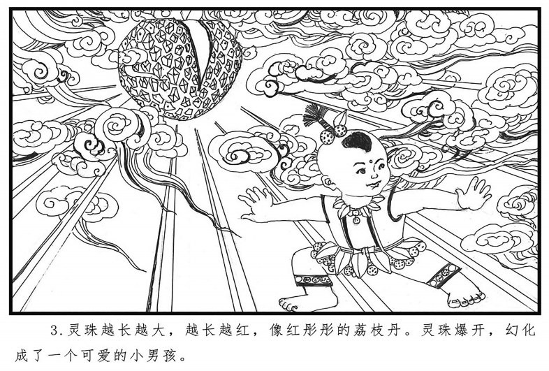 3.灵珠越长越大,越长越红,像红彤彤的荔枝丹。灵珠爆开,幻化成了一个可爱的小男孩。