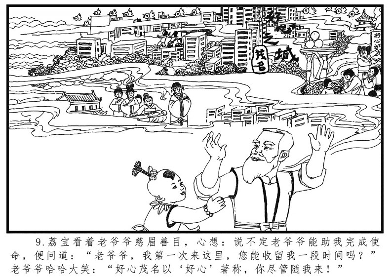9.荔宝看着老爷爷慈眉善目,心想:说不定老爷爷能助我完成使命,便问道:“老爷爷,我第一次来这里,您能收留我一段时间吗?”老爷爷哈哈大笑:“好心茂名以‘好心’著称,你尽管随我来!”