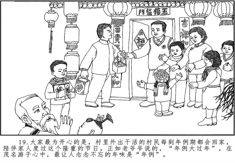 19.大家最为开心的是,村里外出干活的村民每到年例期都会回家,陪伴家人度过这个隆重的节日。正如老爷爷说的,“年例大过年”,在茂名游子心中,最让人念念不忘的年味是“年例”。