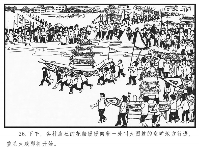 26.下午,各村庙社的花船缓缓向着一处叫大园坡的空旷地方行进,重头大戏即将开始。