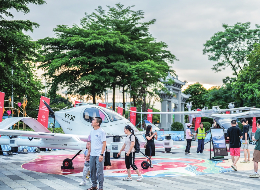 ▲6月3日,广州低空航展上,eVTOL综合运营服务商合利智能的工程师团队和他们运营服务的机型。新华社记者 刘大伟 摄