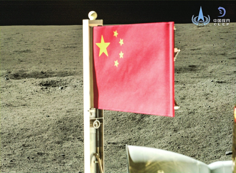 还有这鲜艳的一抹红——表取完成后,嫦娥六号着陆器携带的五星红旗在月球背面成功展开。这是我国首次在月球背面独立动态展示国旗。
