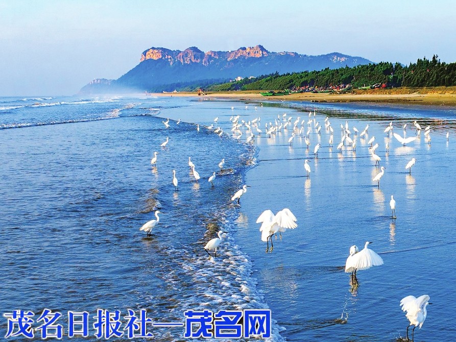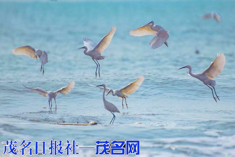 茂名网讯 海鸥白鹭在海天之间翱翔,成片的红树林随着海风摇曳,眼前的水东湾海岸景观美得如梦似幻。