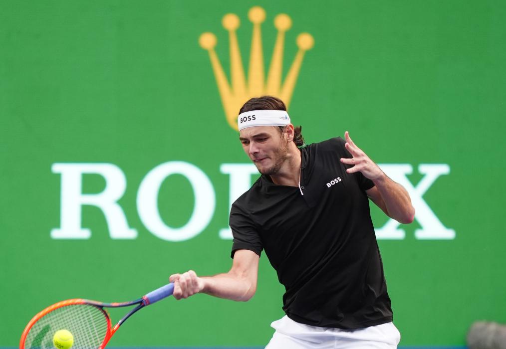10月11日,弗里茨在比赛中回球。新华社记者 许雅楠 摄