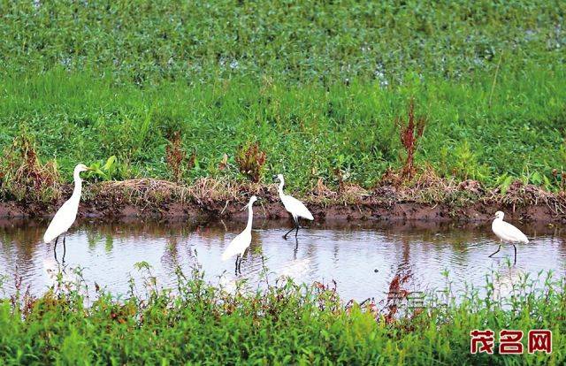“哇,湖面好多水鸟在飞哟!”刚到茂南区镇盛镇彭村湖,小记者们便惊喜得大声嚷道。据了解,彭村湖集雨面积34平方公里,是小东江水系的重要组成部分,担负着市中心城区的防洪排涝任务。茂南按“截污、清淤、修路、造景”的思路,大力推进彭村湖湿地的综合治理与生态修复。远处湖光潋滟,近处水草丰美,栈道旁连片美人蕉鲜花盛放,芦竹枝叶婆娑,小记者和家长置身其中,乐而忘返。